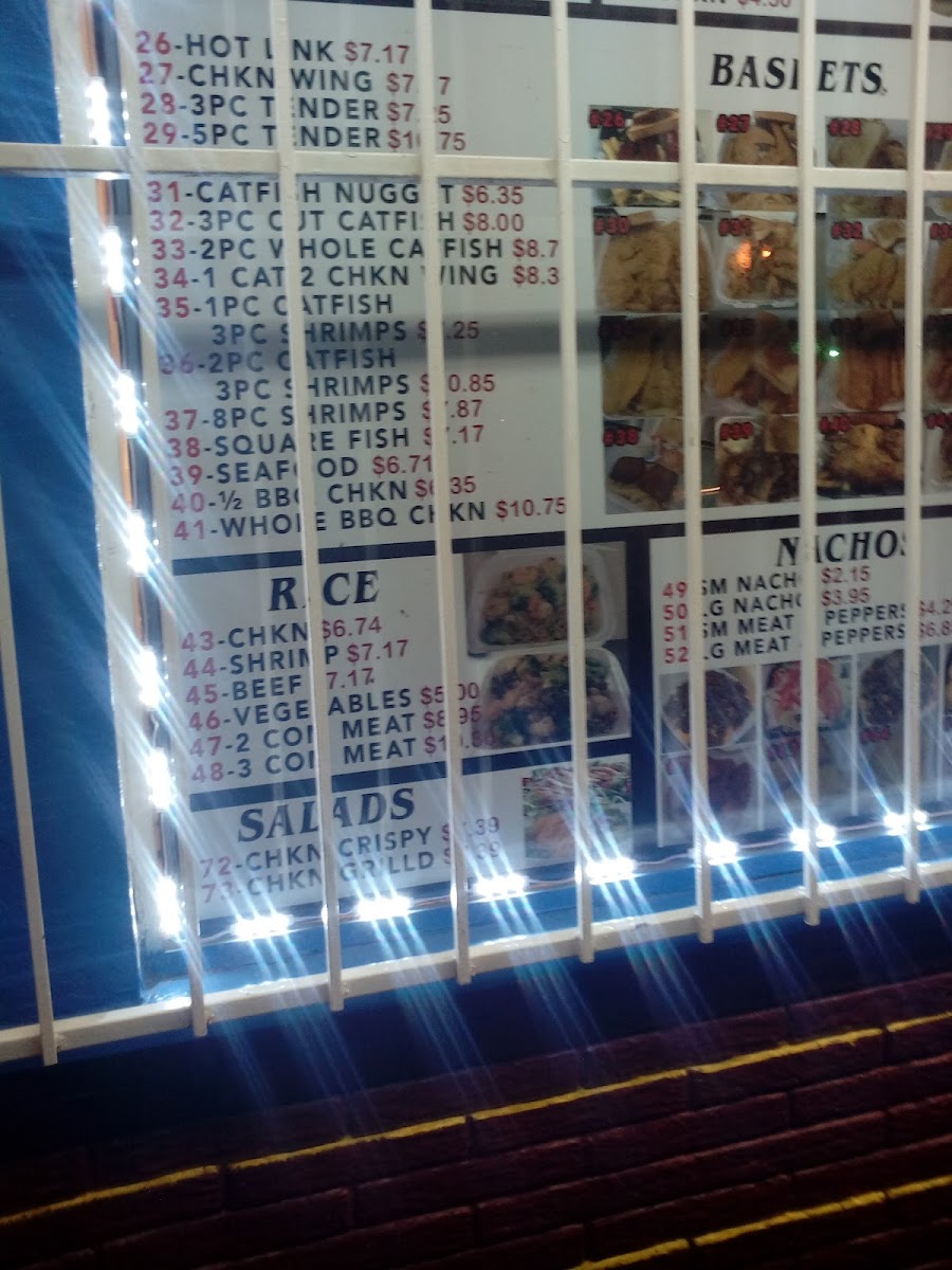 Come with 1pc whole slice Catfish, 3pc jumbo shrimps, salad, pepper, french fried and toast.